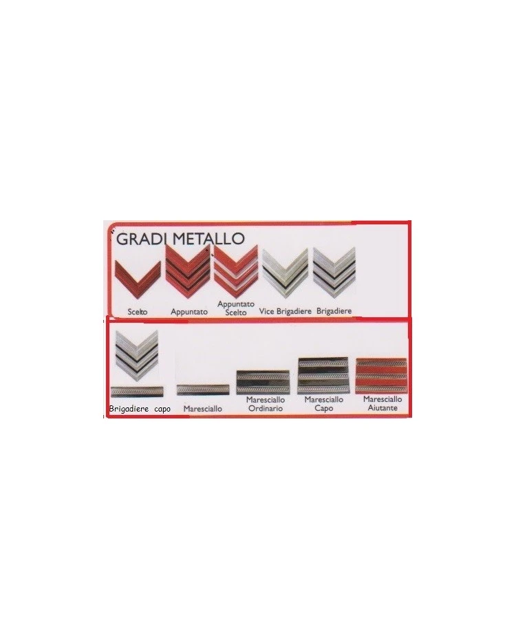 | Gradi Carabinieri | Carabiniere scelto, Appuntato, Appuntato scelto, Vice Brigadiere, Brigadiere, Maresciallo, Maresciallo Ordinario |