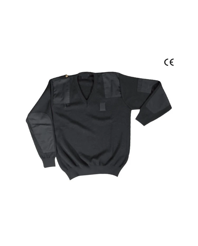 Maglione operativo maglia rasa realizzato in misto lana con toppe, spalline, porta biro, porta placca e 2 bottoni collo a V colore nero.