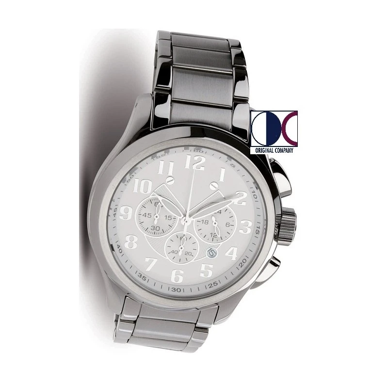 Cronografo da uomo con indici a rilievo, lancette fluorescenti, quadrante lavorato,