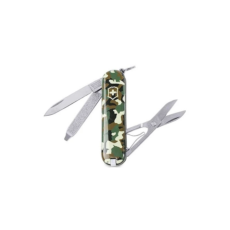 lama, forbici, lima per unghie, cacciavite, anello, pinzette e stuzzicadenti